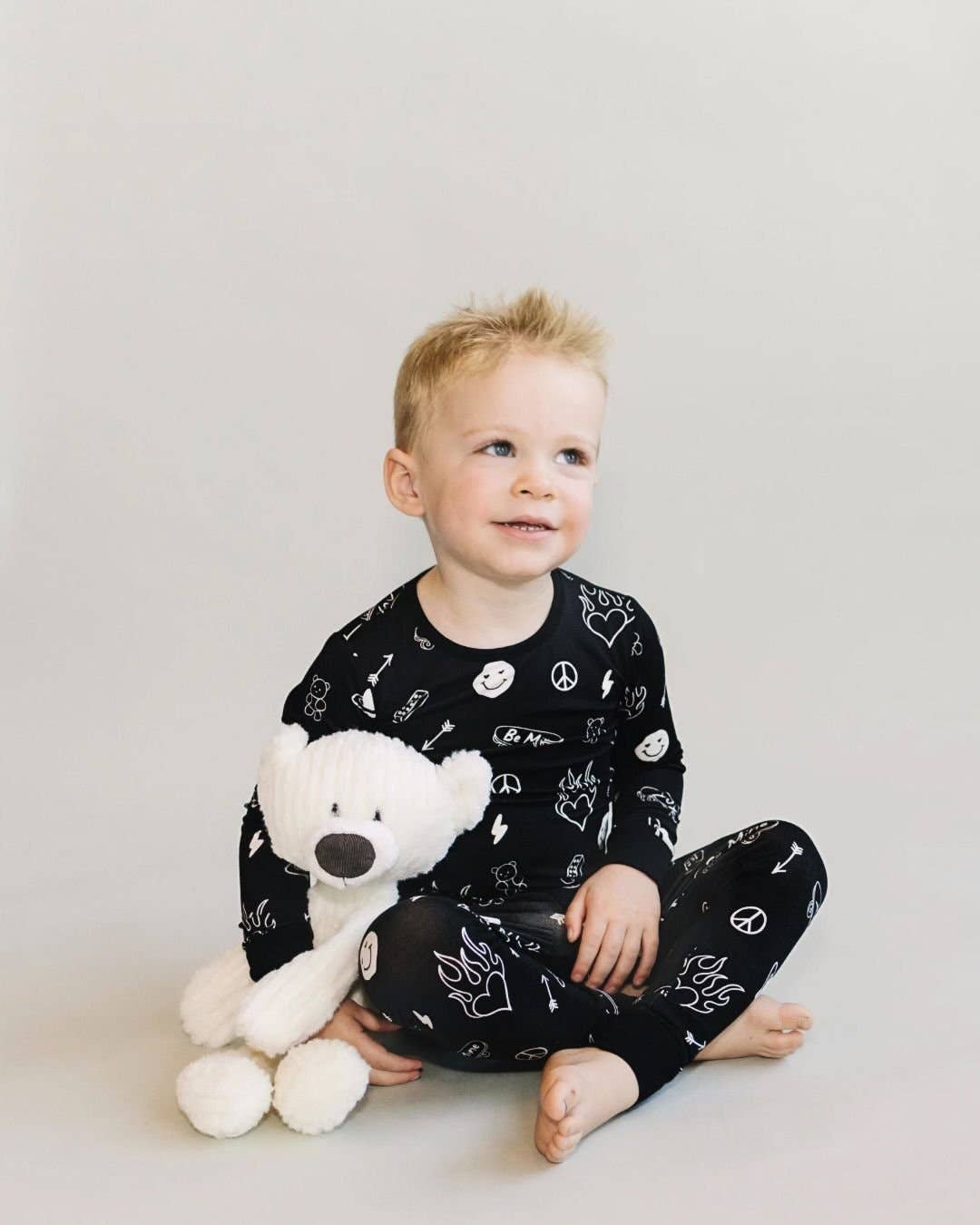 Rad little Valentine! Our bamboo two-piece set is the perfect blend of style, softness, and functionality for your little bundle of joy. Your little one will stay cozy and comfortable, whether it's playtime, nap time, or cuddle time.