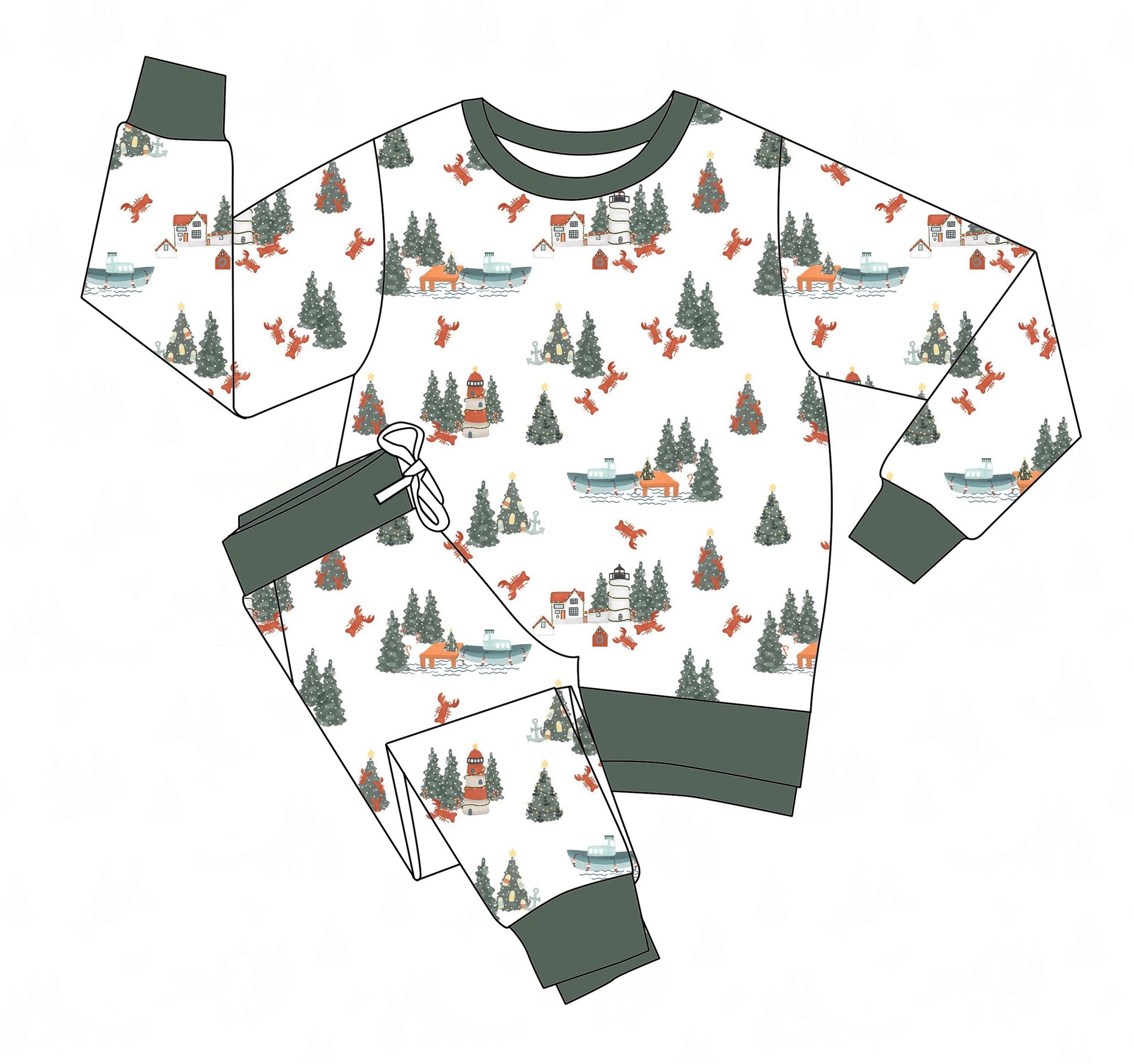 This French terry sweatshirt features our harbor holidays print, perfect for kids. Made with soft, comfortable fabric, this sweatshirt is designed for cozy days and playful adventures. Let your little one stay stylish and warm in this must-have wardrobe staple.