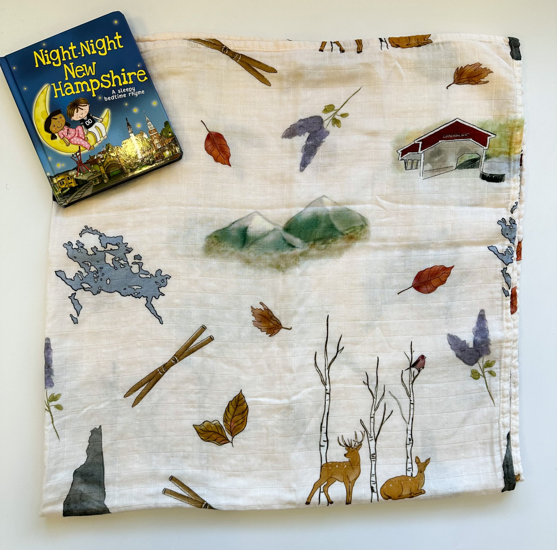 Matching our popular pajamas, is our Muslin cotton blanket in the same New Hampshire and Massachusetts prints.